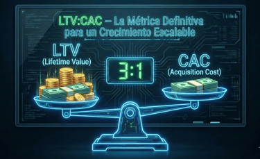 Ahora, ¿cuál es la relación LTV:CAC? Es la métrica que compara cuánto cuesta adquirir un cliente con el ingreso total que ese cliente genera para la empresa a lo largo del tiempo.